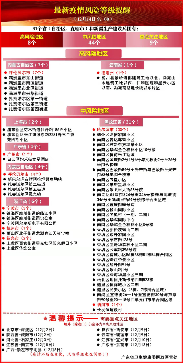 12月13日0-24时,全省新增境外输入确诊病例4例,均为广州报告,分别来自美国、加拿大、老挝和马来西亚。新增境外输入无症状感染者2例,广州报告1例,来自老挝;深圳报告1例,来自新加坡。 新增出院2例,目前在院48例。截至12月13日24时,全省累计报告新冠肺炎阳性感染者6503例(境外输入4561例),其中确诊病例3343例(境外输入1775例),无症状感染者3160例(境外输入2786例)。 来源:健康广东