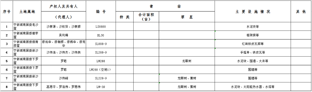 为做好南部新城宁新城南房屋征收补偿工作,本着依法依规、公平公正的原则,切实保护被征收人的合法权益,现将所征收的地上附着物进行公示。凡对公示内容有争议的,请在公示时间内向兴宁市宁新街道办事处反映。
