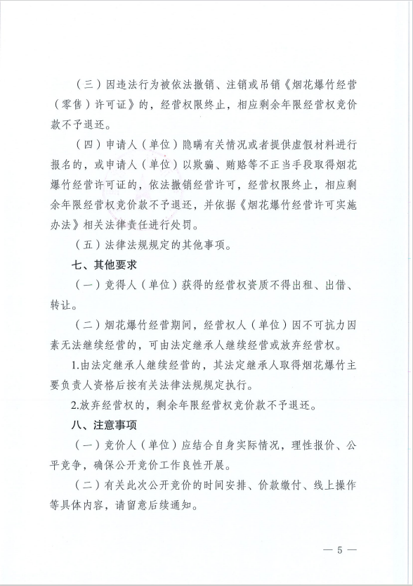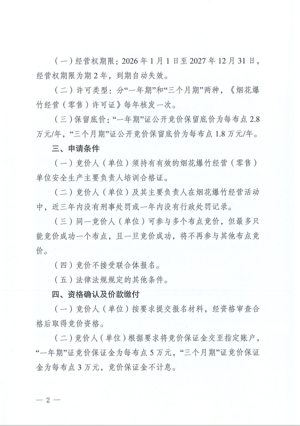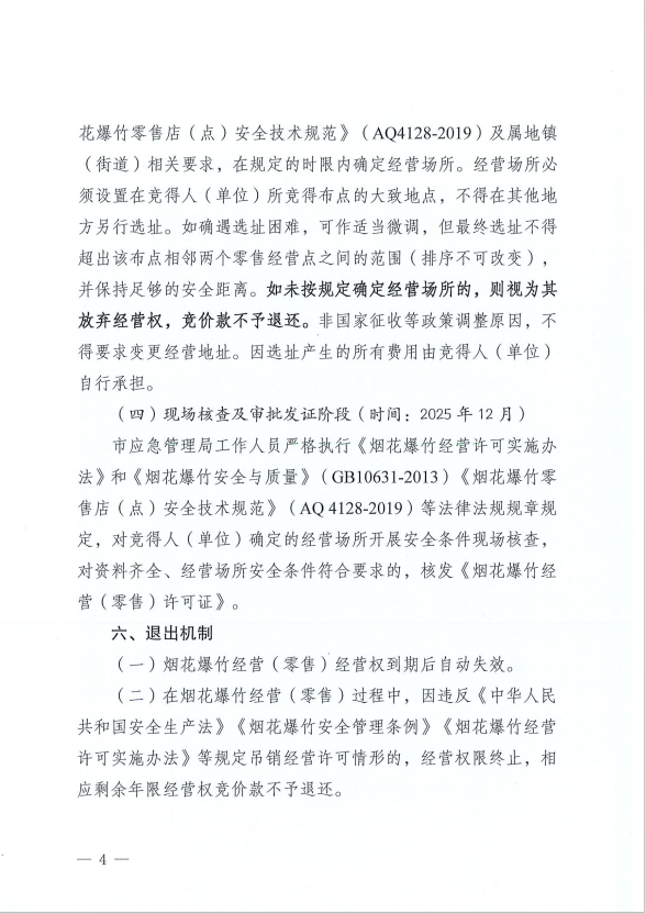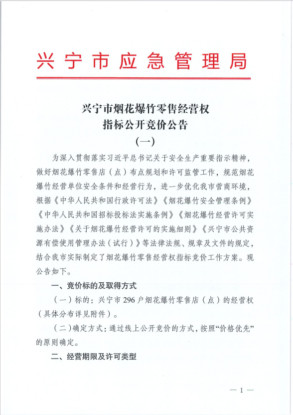 兴宁市烟花爆竹零售经营权指标公开竞价公告