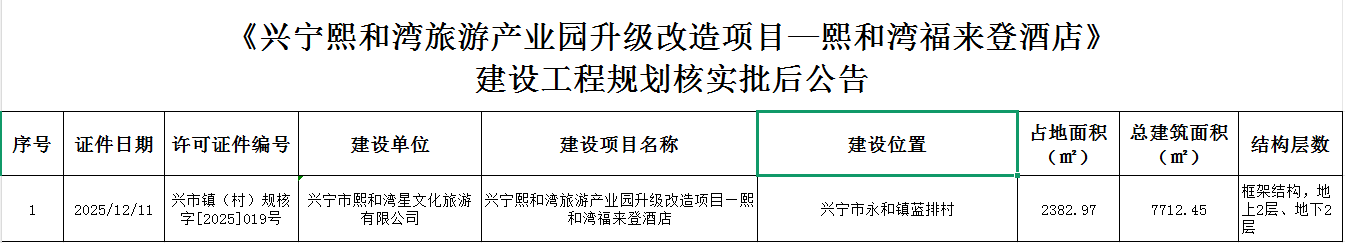 《兴宁熙和湾旅游产业园升级改造项目—熙和湾福来登酒店》建设工程规划核实批后公告
