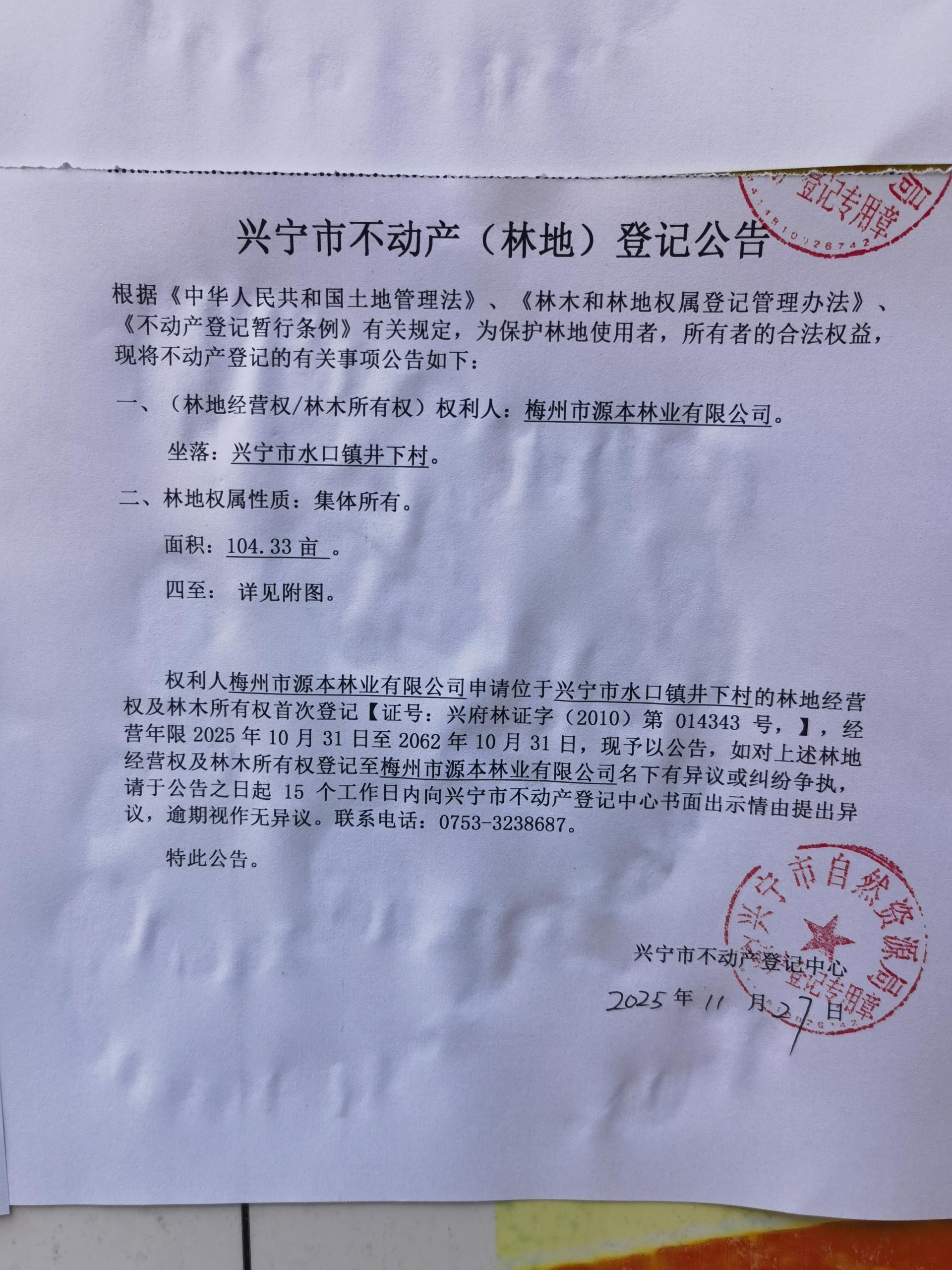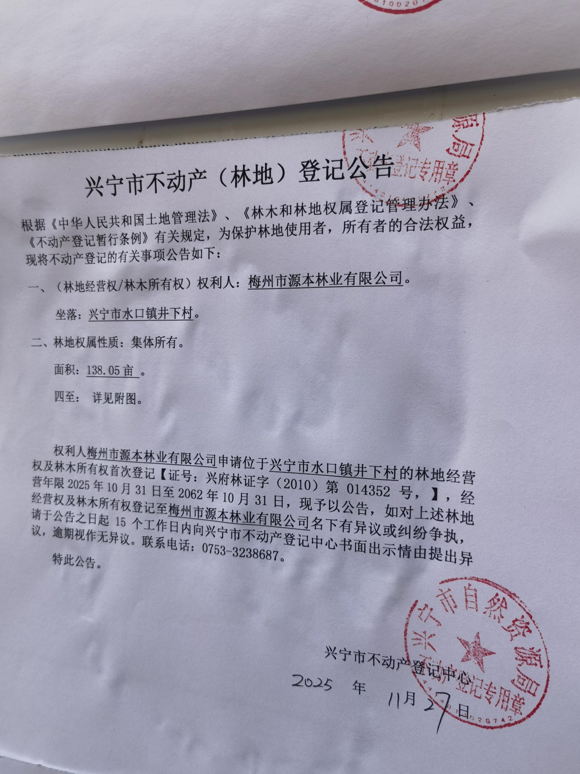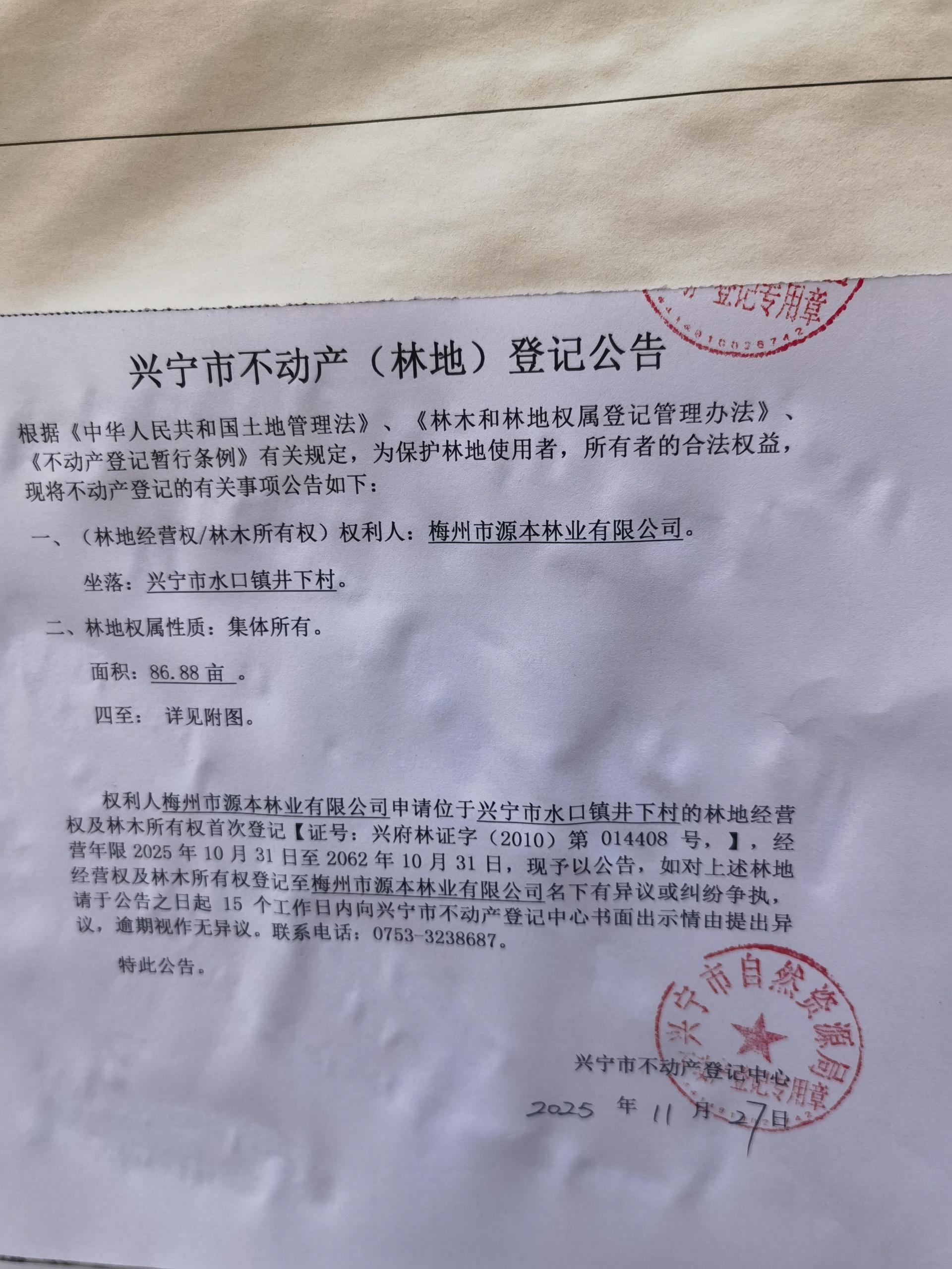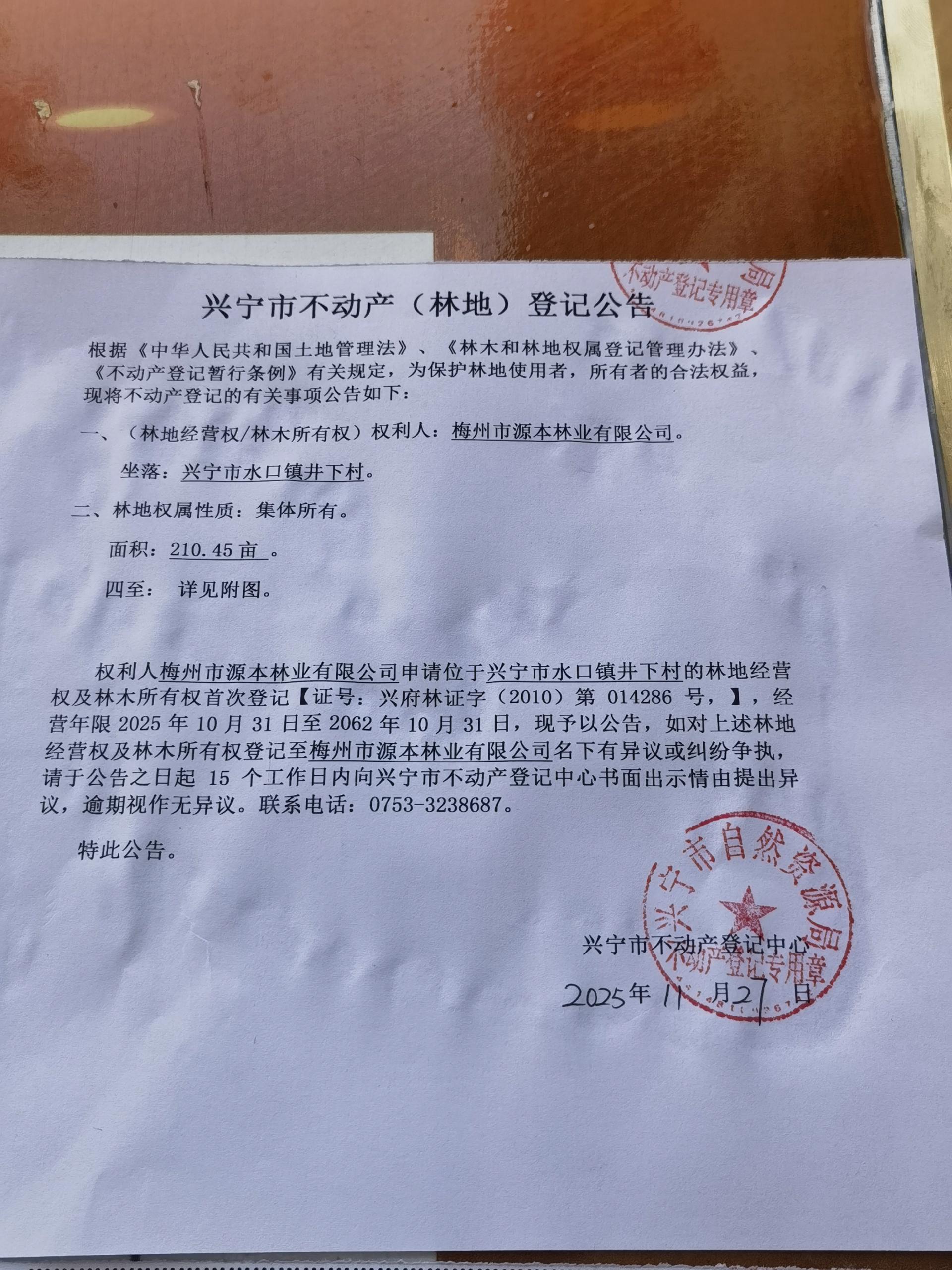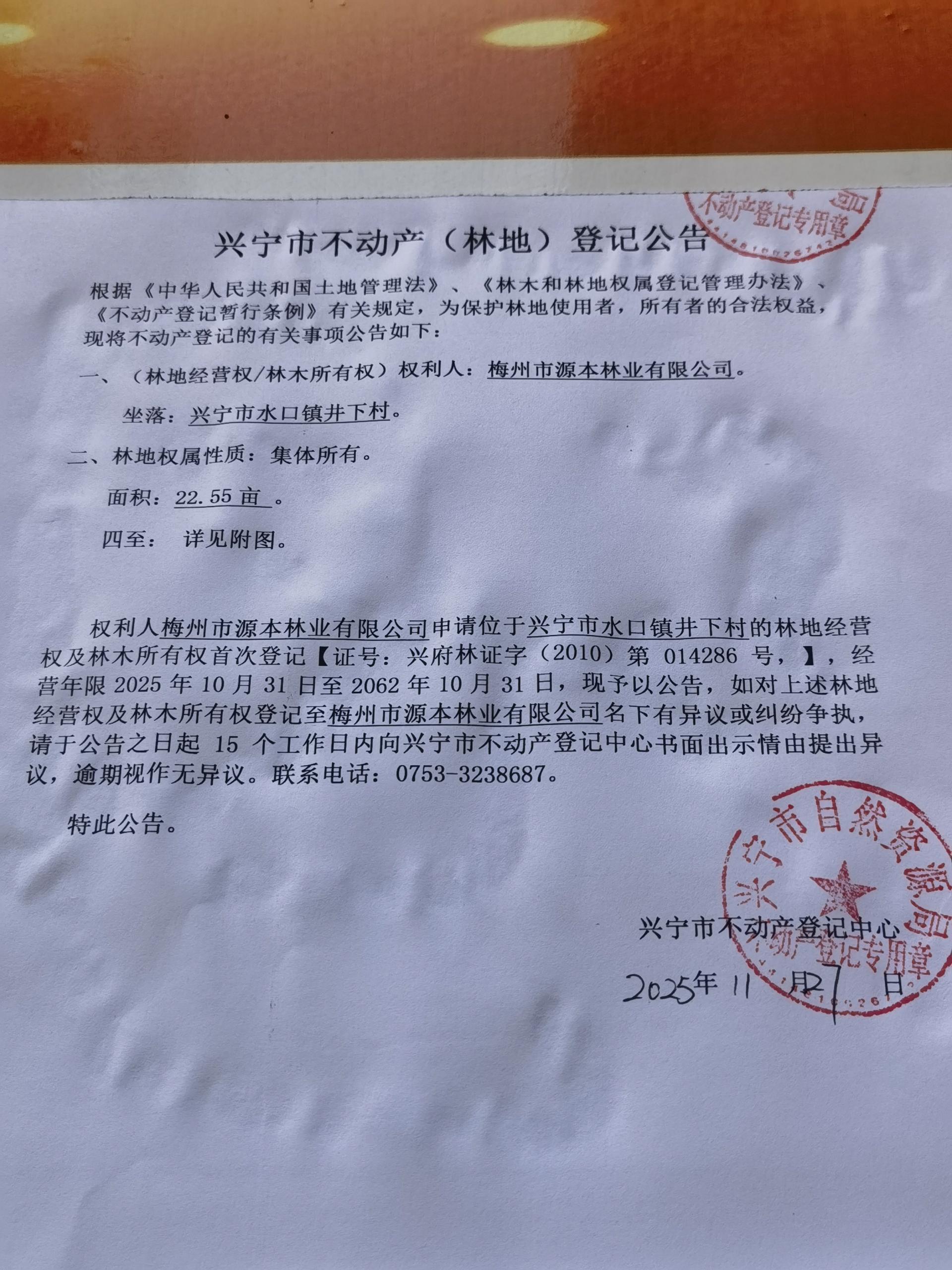 兴宁市不动产登记公告(林地经营权首次登记)——井下村