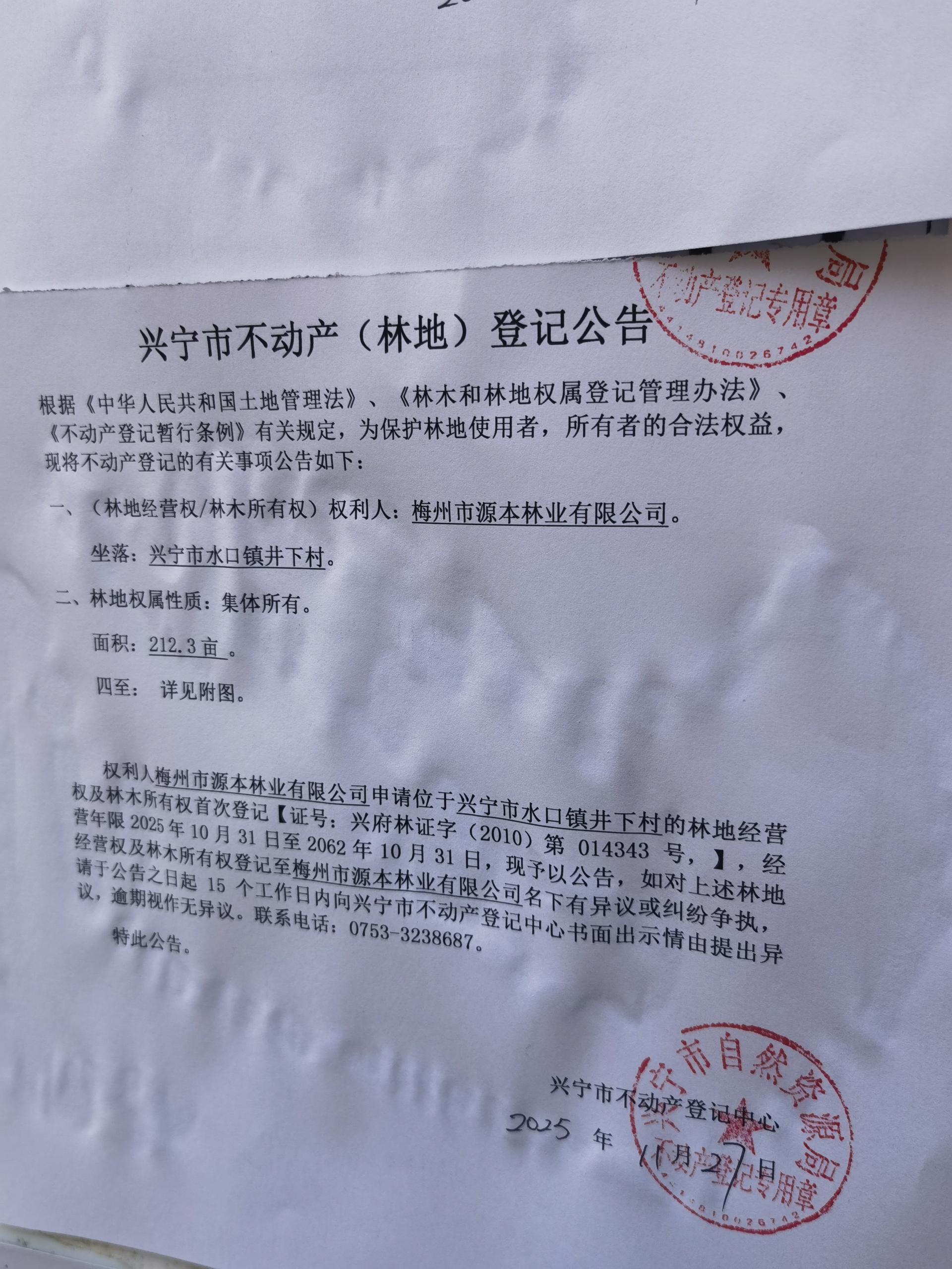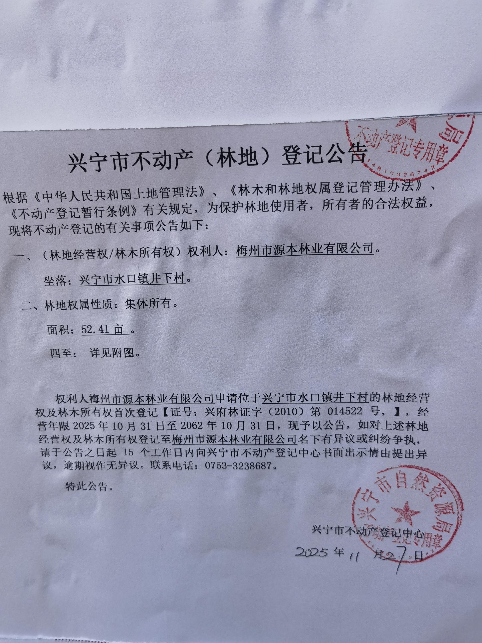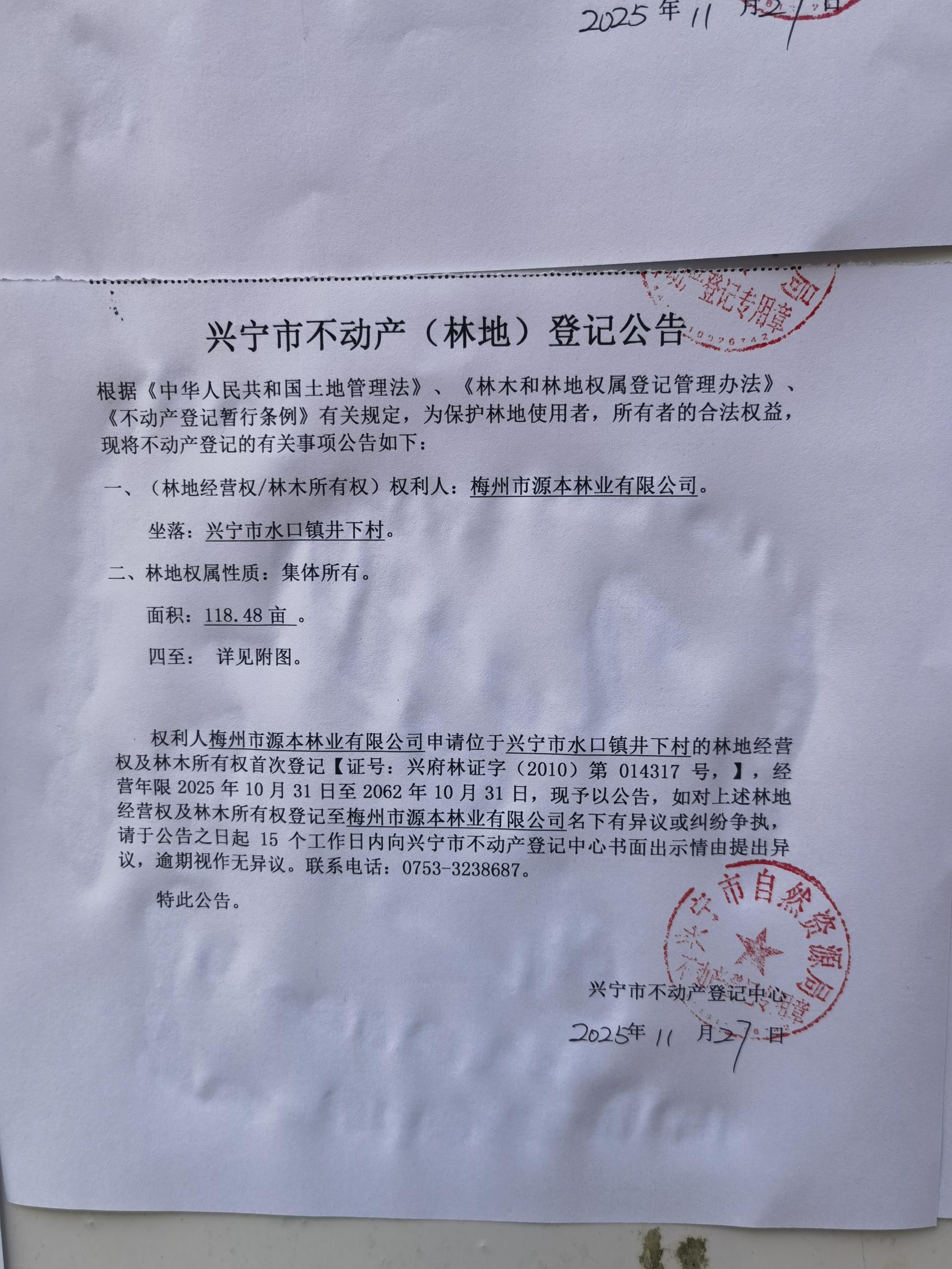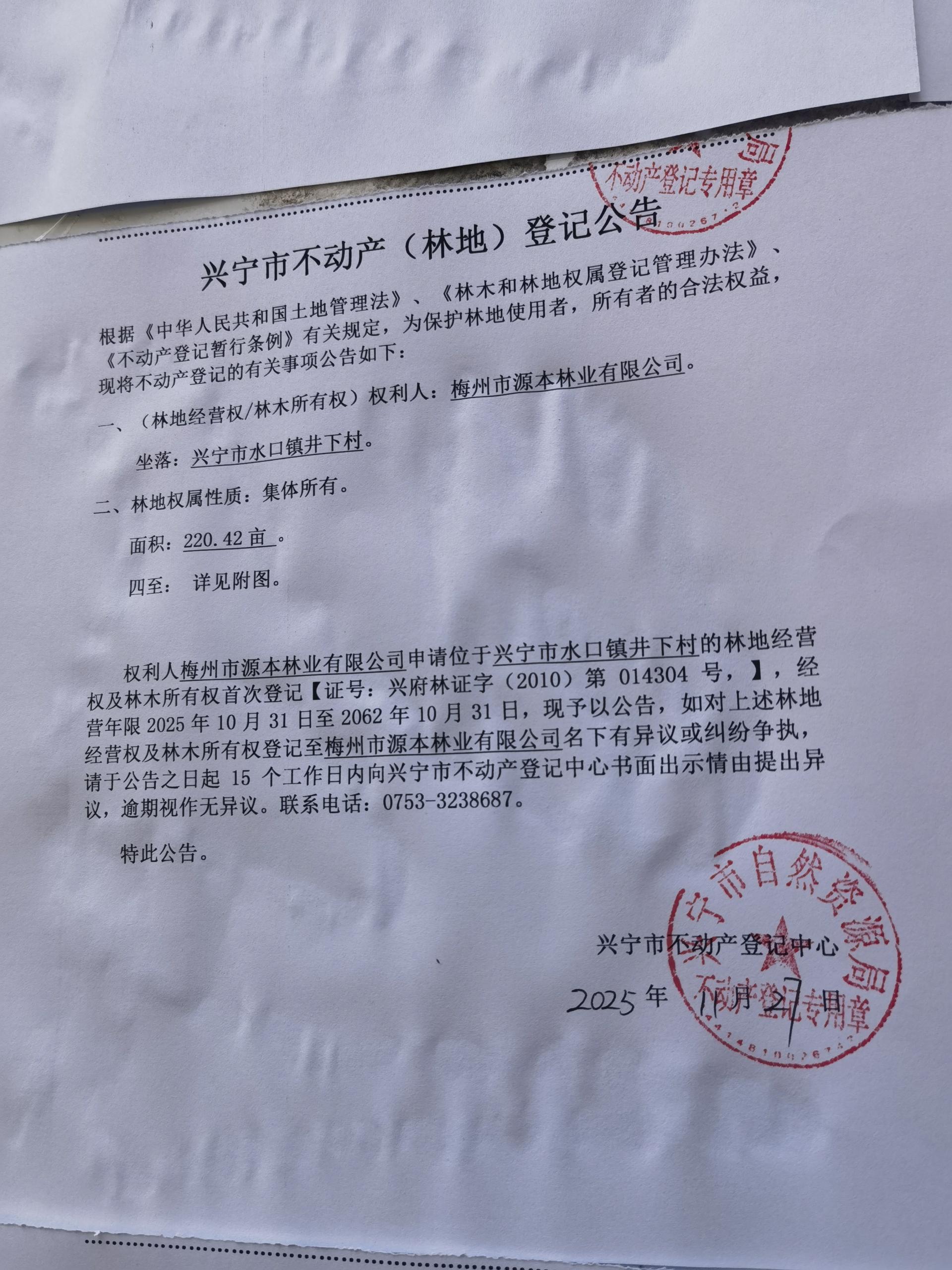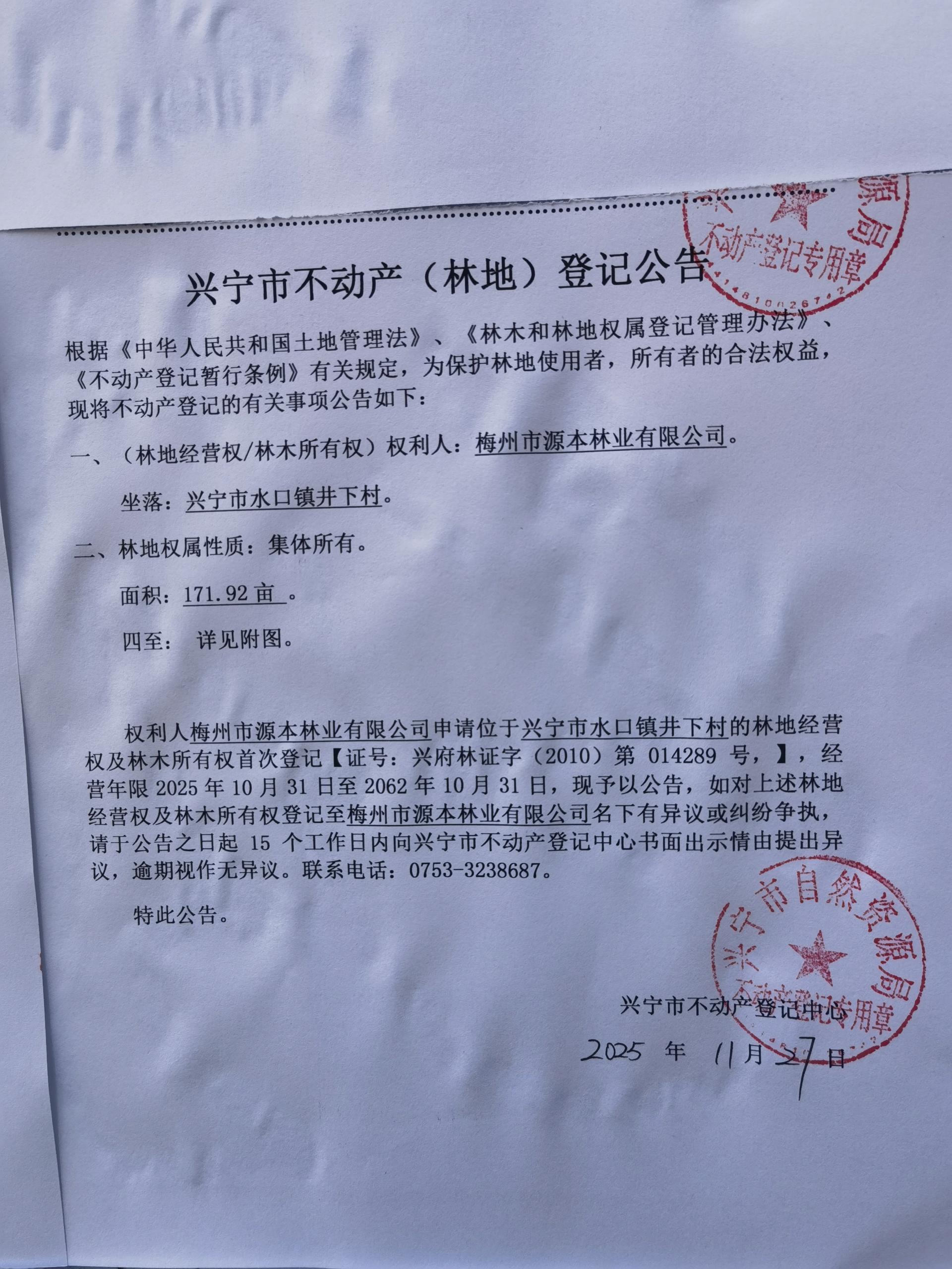 兴宁市不动产登记公告(林地经营权首次登记)——井下村