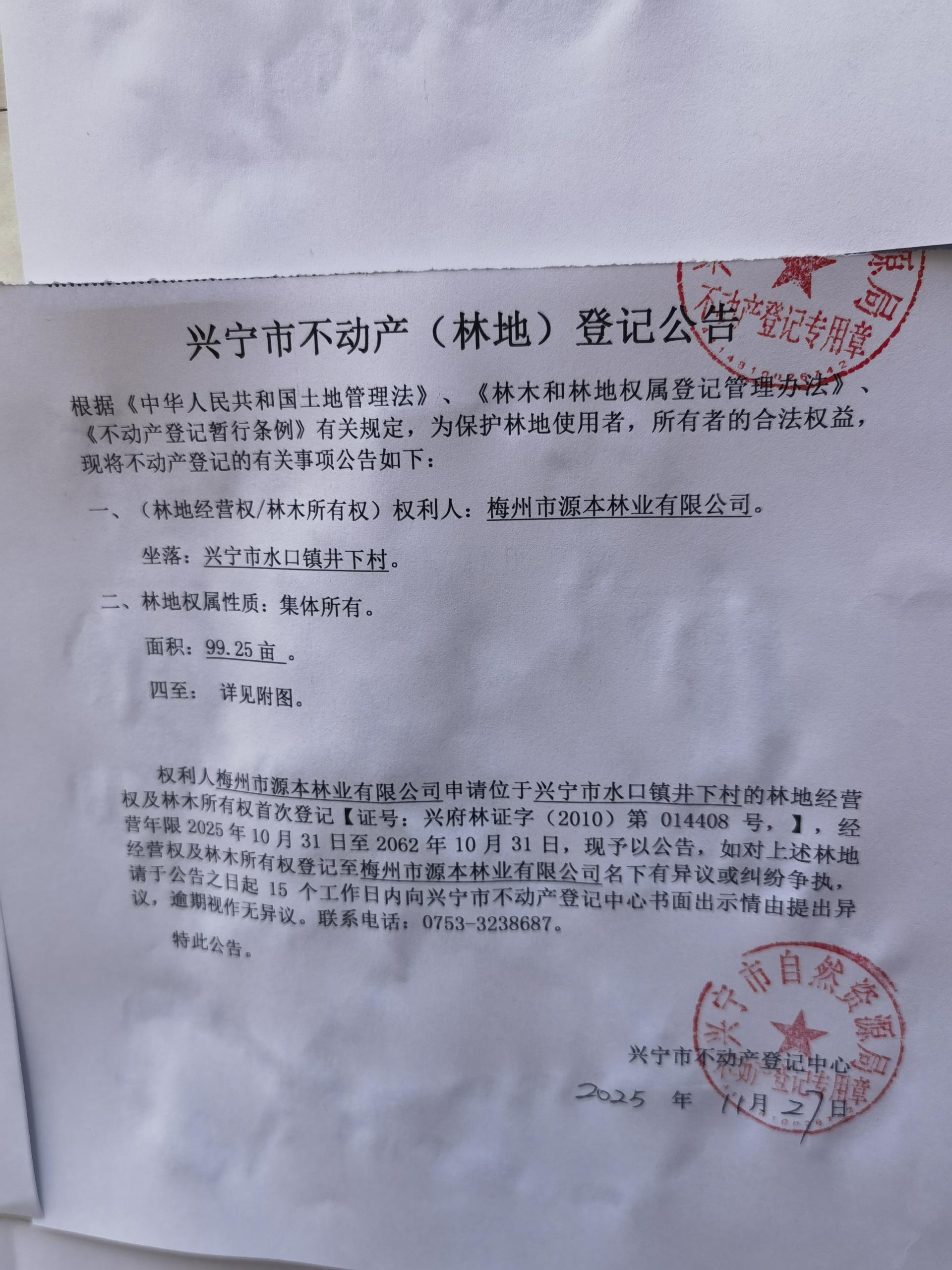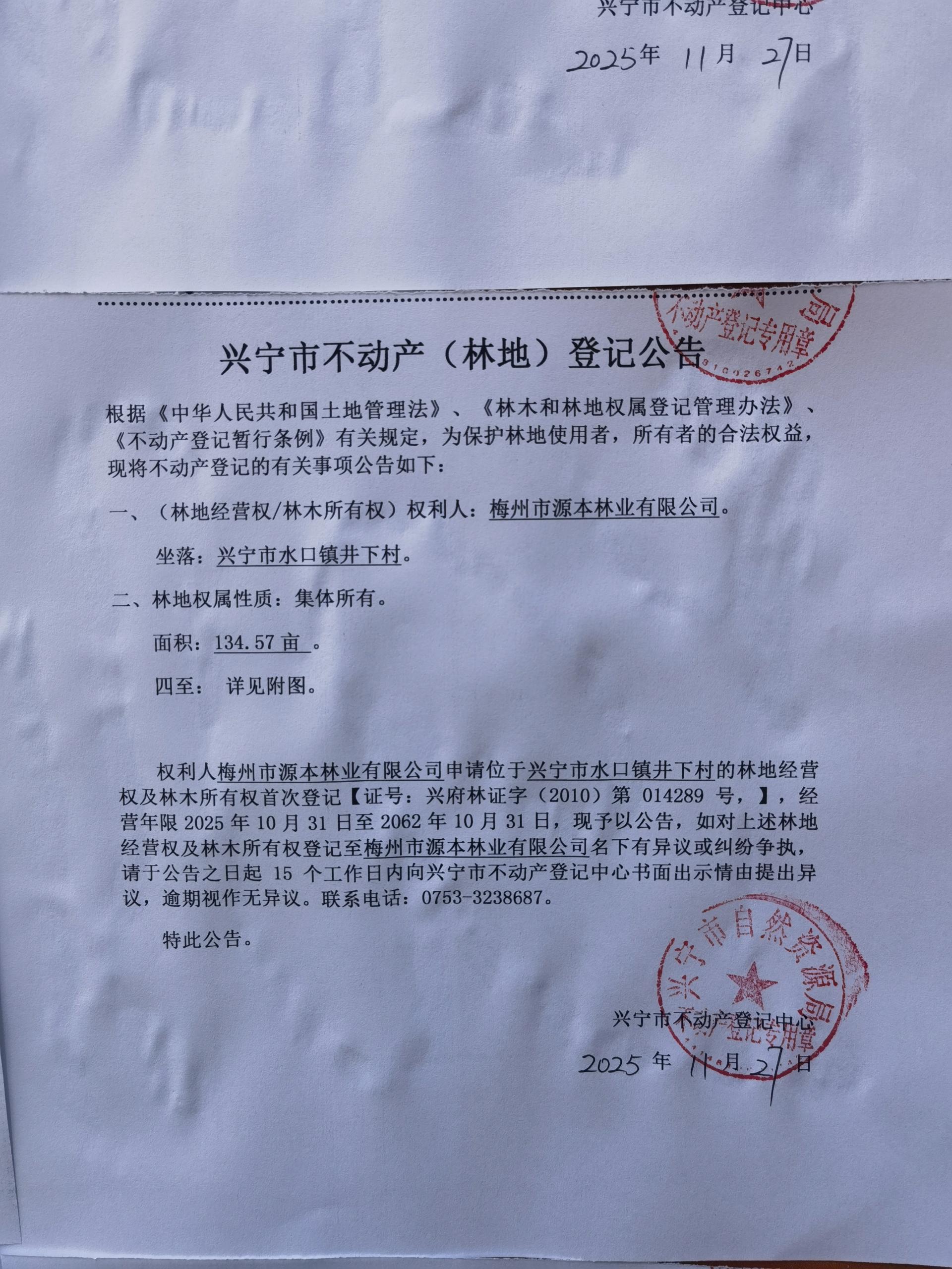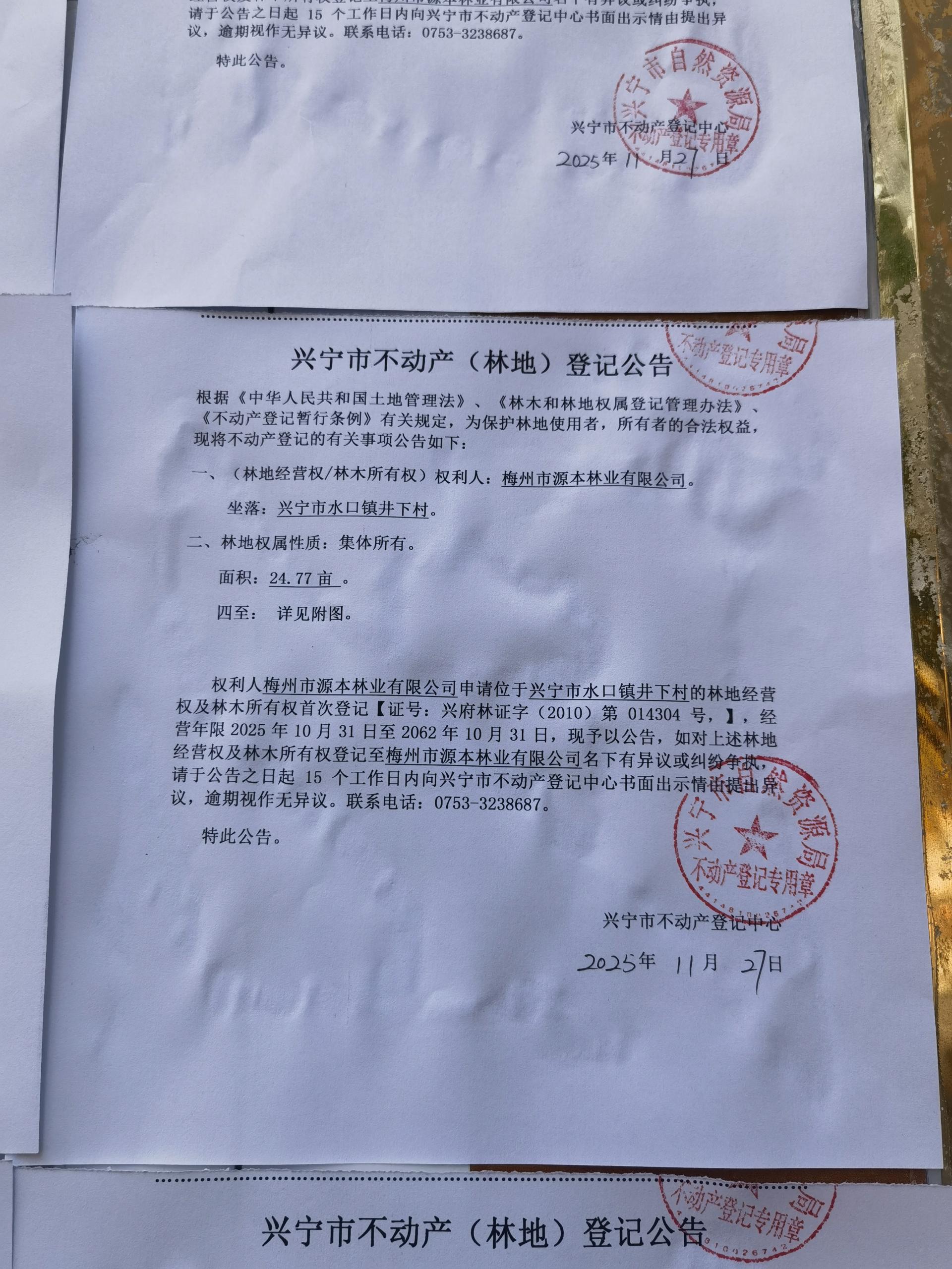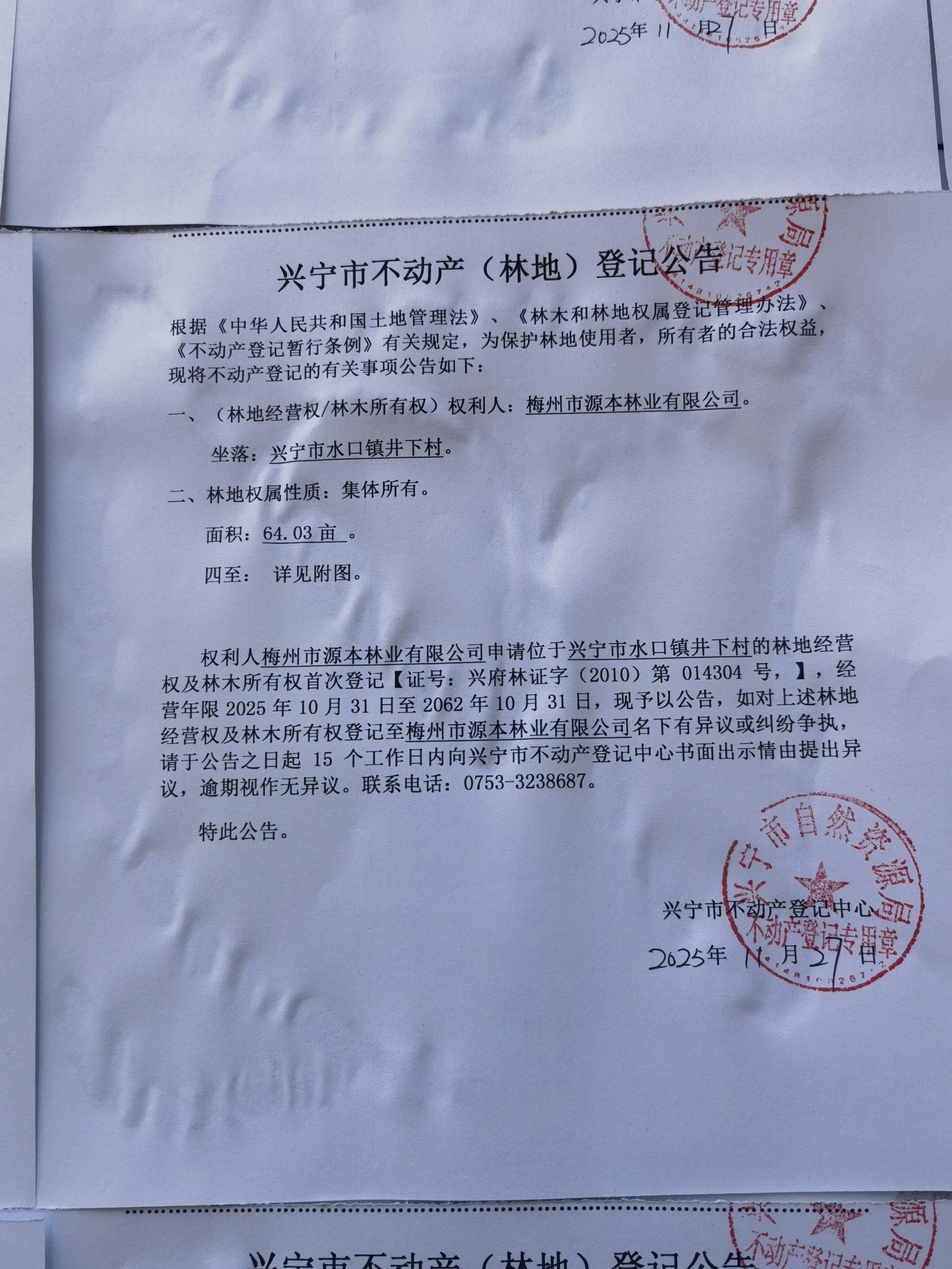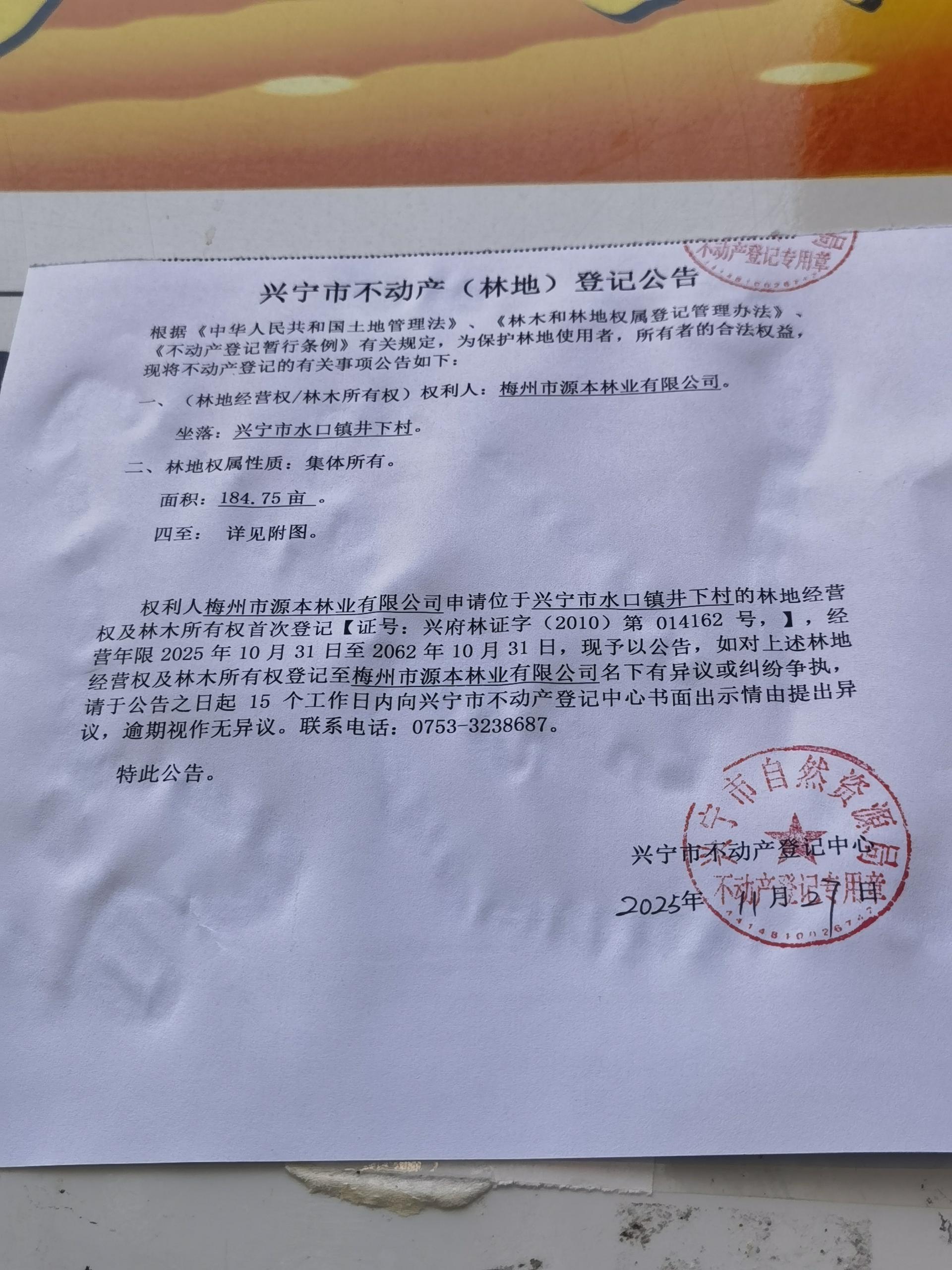 兴宁市不动产登记公告(林地经营权首次登记)——井下村